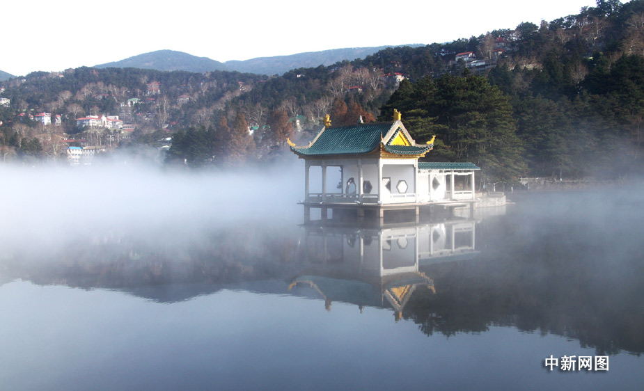 11月29日,受北方弱冷空气影响,庐山出现平流云、佛光奇观,佛光持续了近二个多小时。当日,整个庐山被浓浓的云雾所笼罩,若隐若现,宛如仙境。(胡国林 陈飞)
