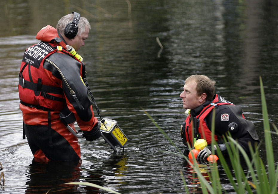 图为美国警方在附近水域检查。