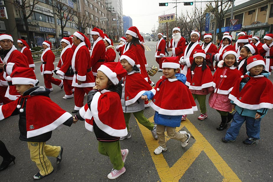 韩国千余“圣诞老人”为筹善款游行