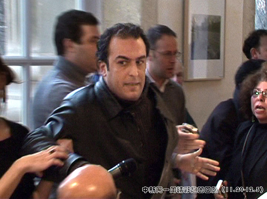 12月1日,因向布什扔鞋而“声名大噪”的伊拉克记者蒙塔兹·扎伊迪在法国巴黎出席新闻发布会时遭遇一名反对者掷鞋。图片来源:中国新闻网>>点击观看详细内容