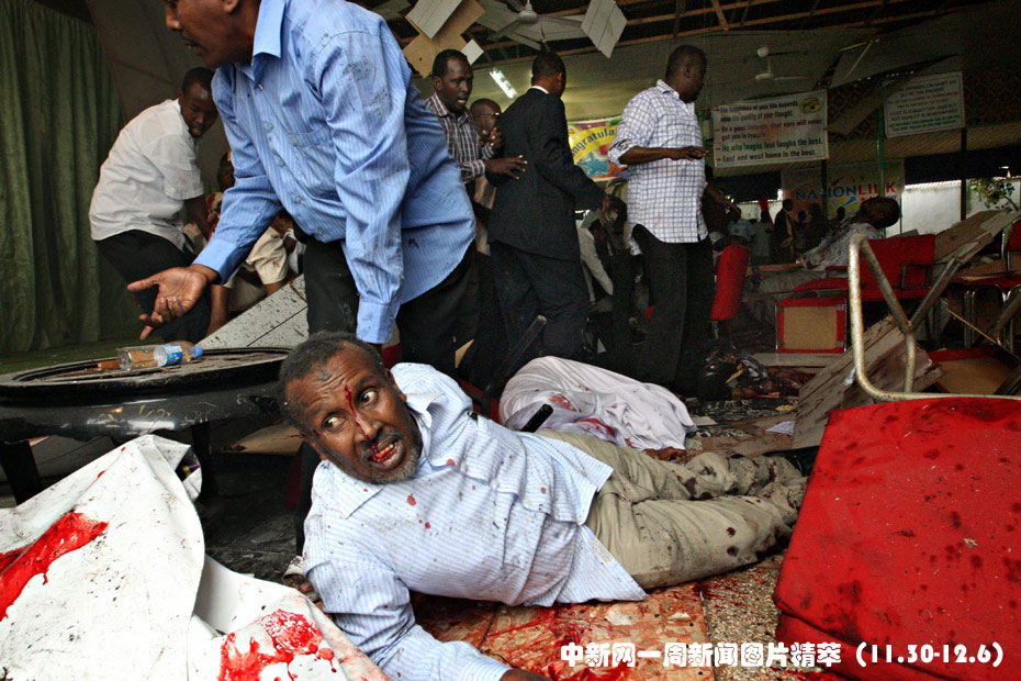 索首都摩加迪沙一家饭店3日发生的自杀炸弹袭击事件至少已造成57人死亡,另有200多人受伤。死者中包括索马里卫生部长、教育部长和高等教育与文化部长。另外,青年与体育部长在爆炸中受重伤。图片来源:中国新闻网