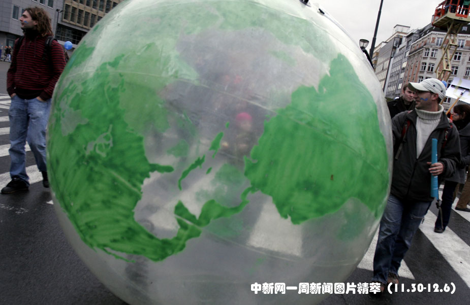 12月5日,近万人比利时首都布鲁塞尔进行游行,呼吁关注全球气候变化。图片来源:中国新闻网