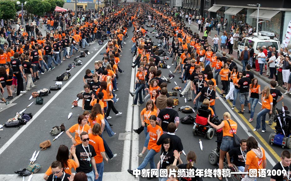 同地跳舞人数最多:5月15日,斯洛文尼亚卢布尔雅那城市广场31,800高中毕业生同跳时跳舞打破了同一地区跳舞的吉尼斯世界纪录。图片来源:中国新闻网