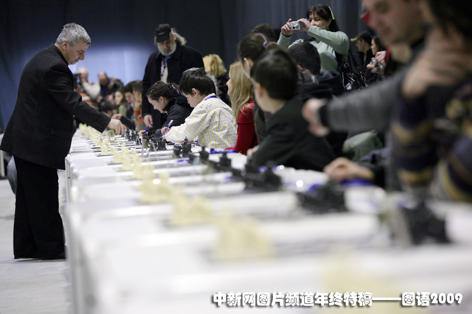 同时对弈对手最多:2月21日,保加利亚国际象棋选手基里尔格奥尔基耶夫与360人同时对弈,打破了吉尼斯纪录。图片来源:中国新闻网