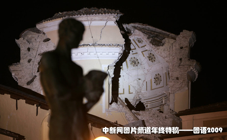 4月7日,意大利拉奎拉市众多历史悠久的建筑和文物在地震中严重受损。