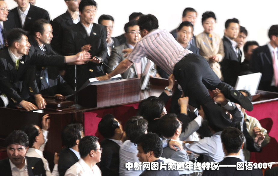 7月22日,韩国首尔议会上数百名议员发生冲突。