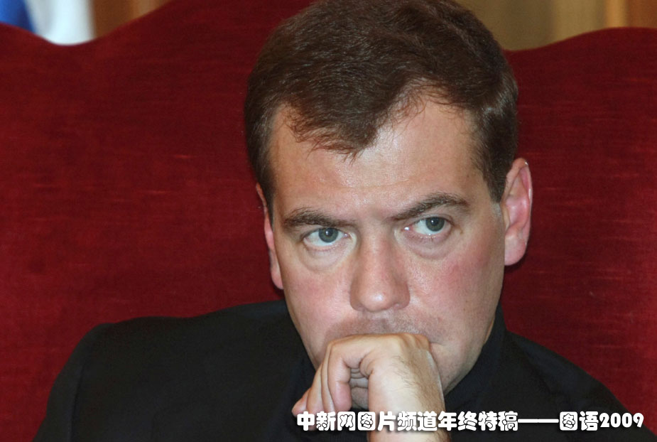 思考者:2009年1月20日,俄罗斯总统梅德韦杰夫在参加地方议会讨论时陷入沉思中。