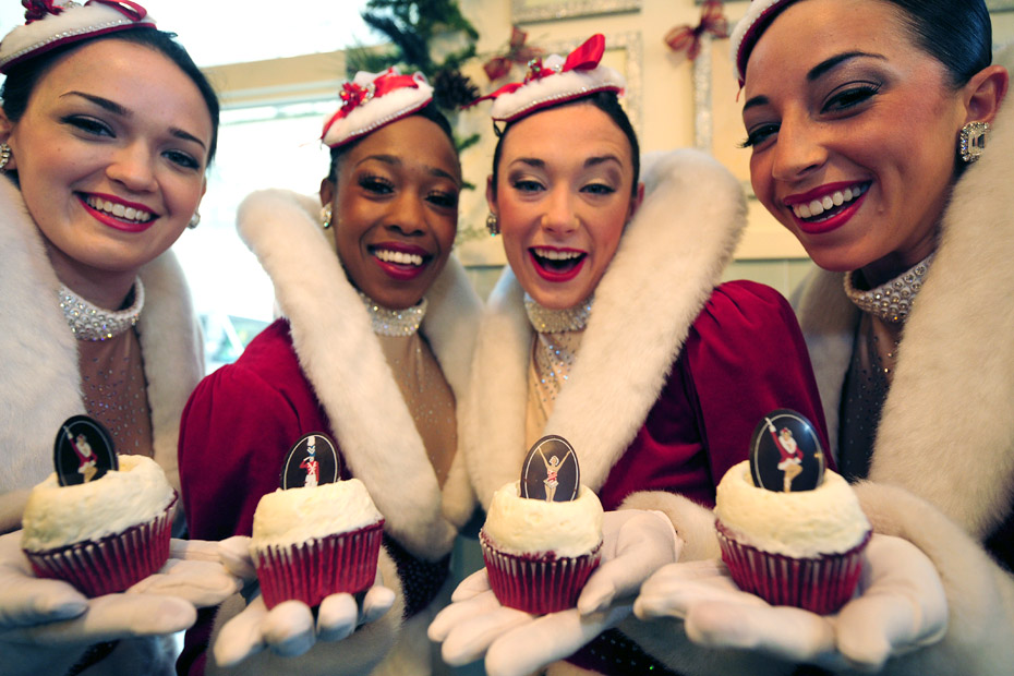 12月8日,美国纽约洛克茨无线电城“火箭女郎”舞蹈团的队员们近日与蛋糕店联合推出演出套票,买蛋糕的观众可以以更优惠的价格购得演出票。图片来源:中国新闻网