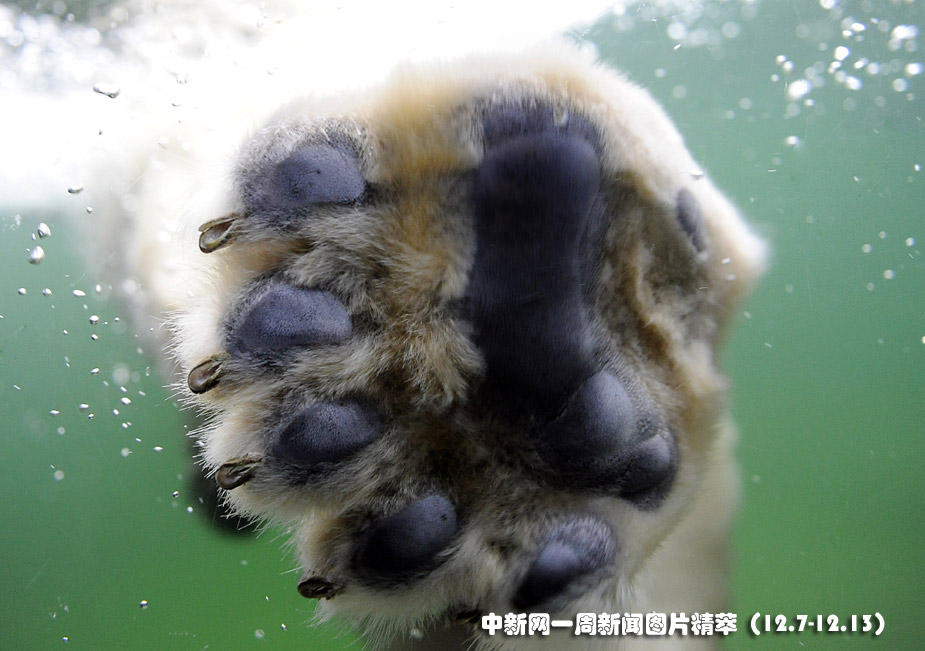 8日(周二),在德国盖尔森基兴的动物园中,一头熊在水中玩耍。图片来源:中国新闻网