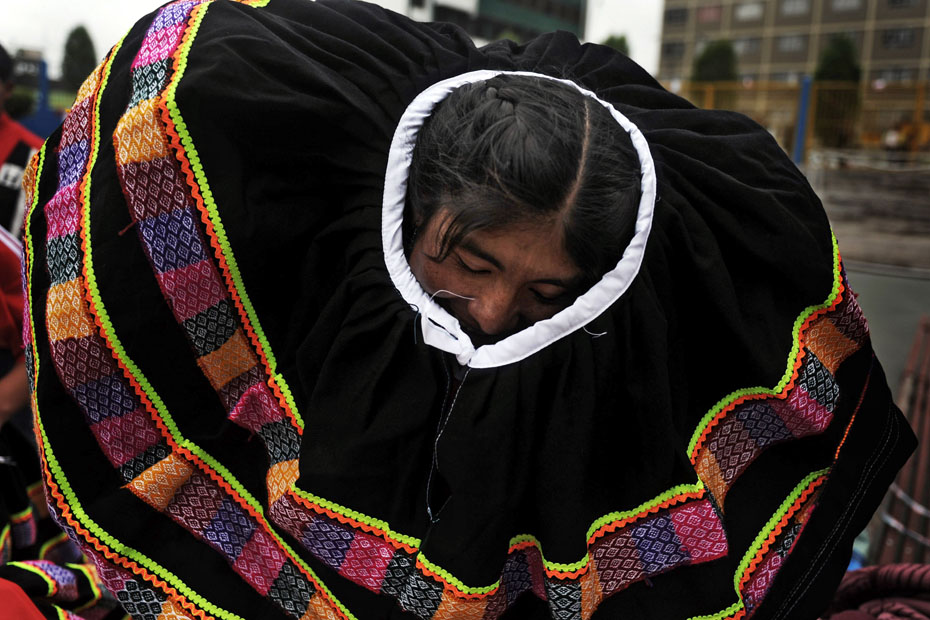 12月12日,秘鲁印第安妇女在利马国家体育场外举办了一场特别的足球赛,所有的球员均身着传统服饰光脚上阵妙趣横生。图片来源:中国新闻网