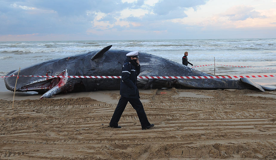 一群抹香鲸12月12日在意大利南部海滩搁浅,其中至少5头已经死亡。据称,这群抹香鲸共有9头,其中有2头经过救援已成功游回大海,目前相关人员对另外2头正在进行救援。图片来源:中国新闻网
