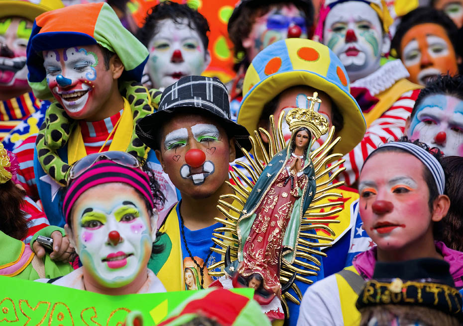 12月16日,墨西哥小丑们聚集在首都墨西哥城参加街头游行活动,700多名小丑用自己五彩斑斓的服饰和滑稽可笑的表演为沿途的人们带来欢笑。图片来源:中国新闻网