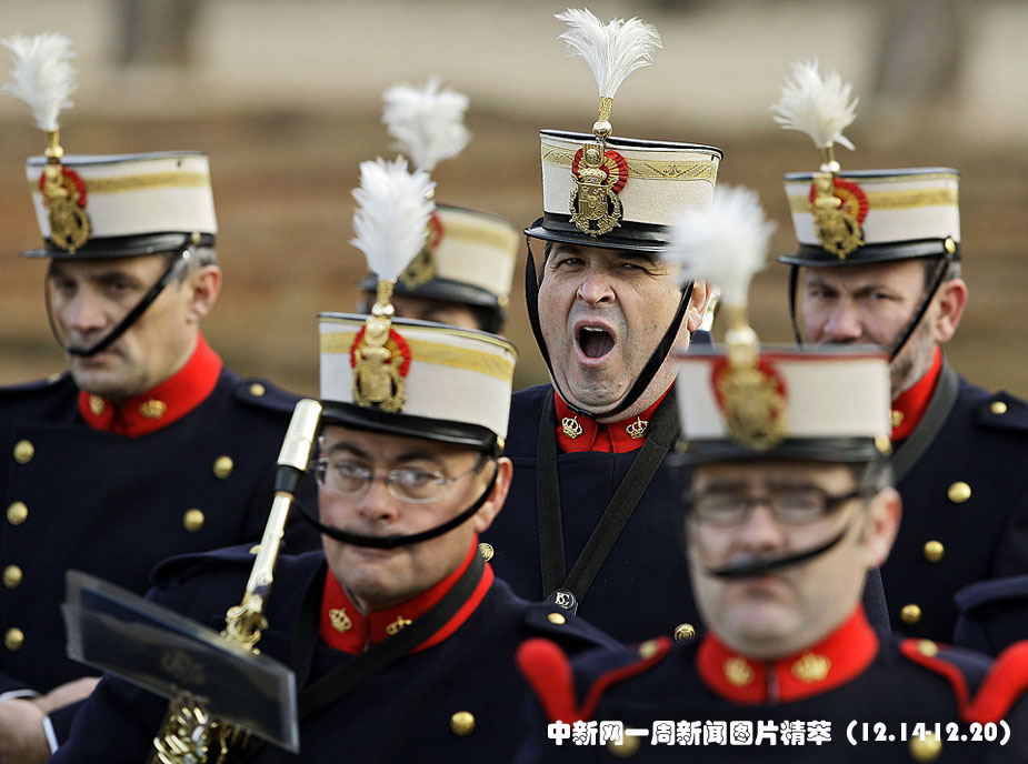14日(周一),西班牙在帕多皇宫举行越南国家主席来访的欢迎仪式,一名皇家卫队卫兵打起了呵欠。图片来源:中国新闻网