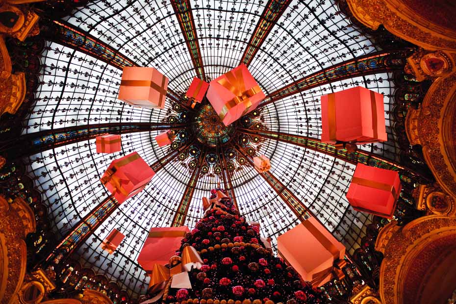 图为法国巴黎一家商场布景,圣诞气氛十足。