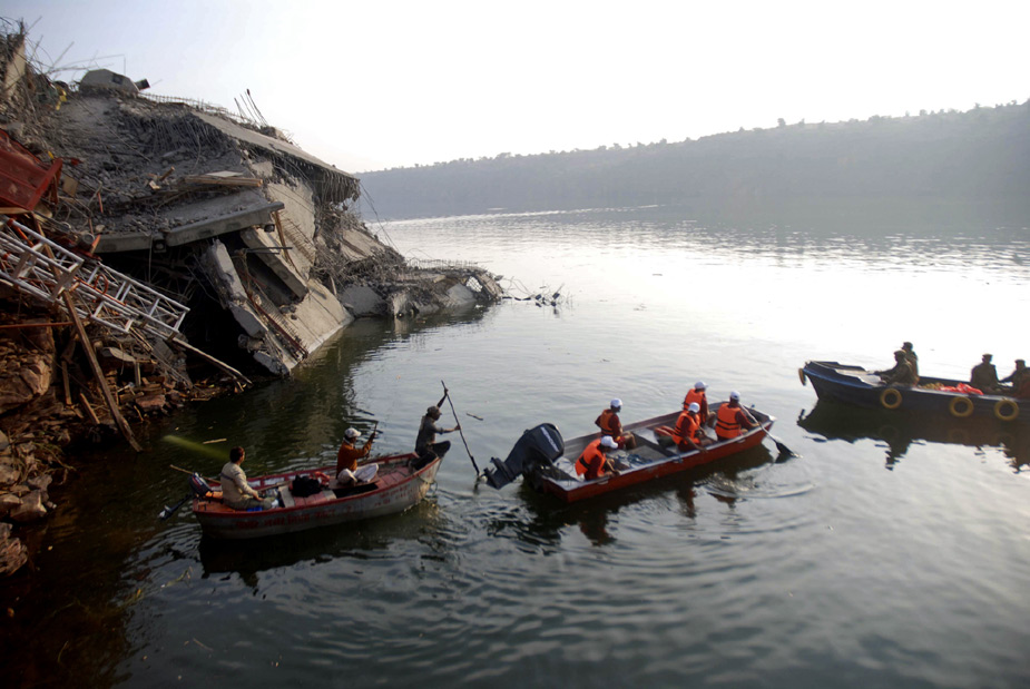 25日,印度西部地区发生桥梁倒塌事故。图片来源:中国新闻网