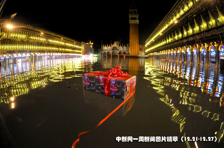 25日(周五),意大利水城威尼斯圣马可广场被洪水浸泡。自从11月份以来,水城威尼斯受潮汐和一股强烈的热带风暴影响屡遭洪水“淹没”。
