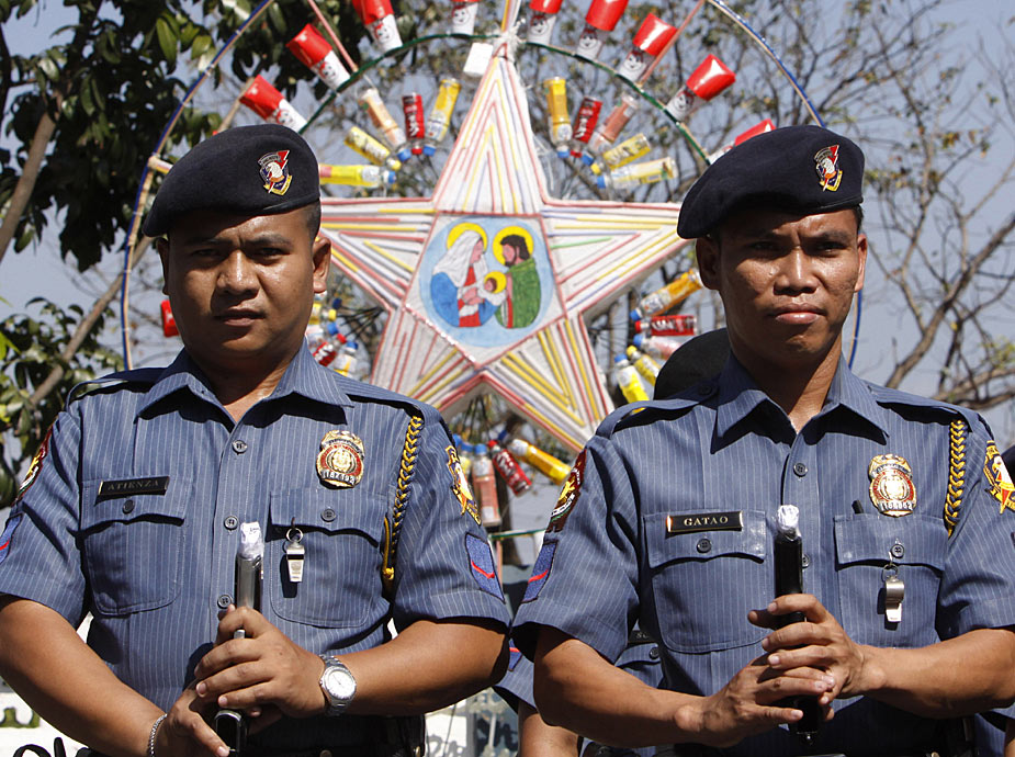 12月29日,菲律宾首都南部的塔吉格市警察部队为了防止警务人员在庆祝新年时胡乱开枪,下令用胶纸把枪口封起来。图片来源:中国新闻网