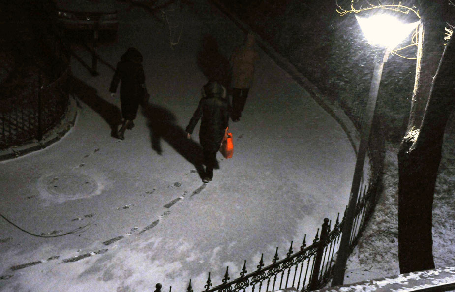 1月3日子夜时分,北京开始降下新年第二场雪,风雪夜归人踏出第一行脚印冒着严寒回家。贾国荣 摄
