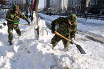 四日,韩国大部分地区遭遇大雪。至下午二时左右,首尔地区积雪厚度超过二十八厘米,这是韩国自一九三七年开始进行积雪量观测以来的最新纪录。图为1月5日,民众在街头除雪。