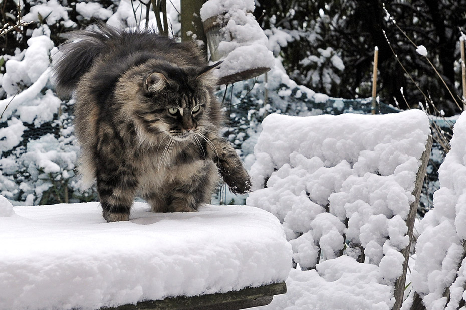 1月3日,德国,猫咪“杜马”好像发现了雪中的“猎物”。