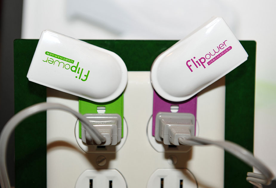 图为国际消费电子展上展示新型USB充电器。