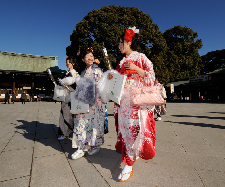今年的1月11日,是日本传统的成人节,所有满20岁的年轻人将宣告自己迈进了成人行列。1月8日,日本一家公司年满20岁的年轻女孩纷纷穿上和服,到庙宇中祈福,提前庆祝成人节的到来。
