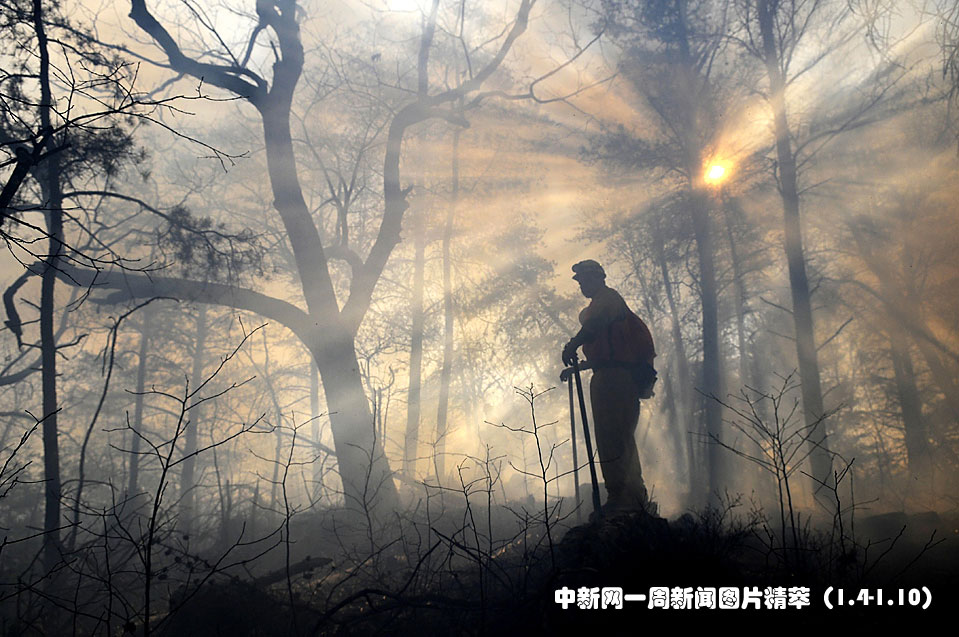 1月6日(周三),一名工作人员在北卡罗来纳州克劳德斯山国家公园一处焚烧现场观察情况。官员们试图将积累了数十年的森林垃圾焚烧掉,这些垃圾可能引发山火。图片来源:中国新闻网