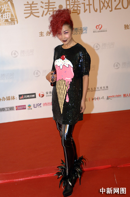 图为孙悦红发造型走秀引尖叫。中新网记者 金硕 摄