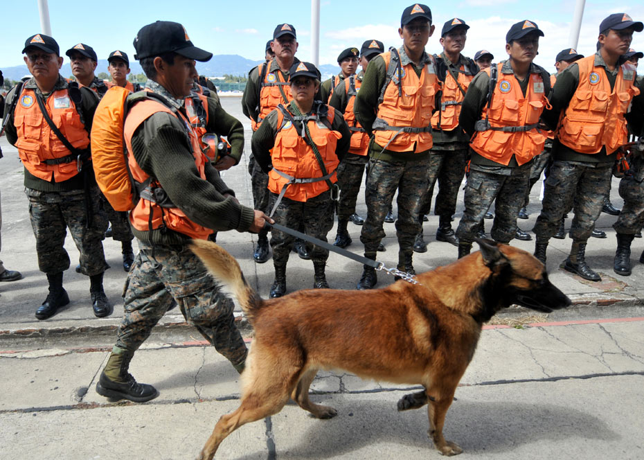 图为危地马拉救援队。危地马拉海地发生强烈地震,伤亡惨重,国际社会在第一时间纷纷伸出援手。中国、美国、法国等多个国家和地区的救援队已集结完毕,奔赴海地地震灾区。图片来源:中国新闻网