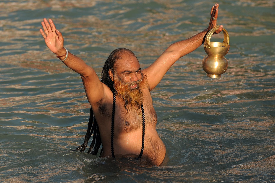 1月14日,数千名印度教信徒前往恒河参加世界上最大的宗教集会大壶节,并在印度圣河——恒河进行了沐浴仪式。图片来源:中国新闻网
