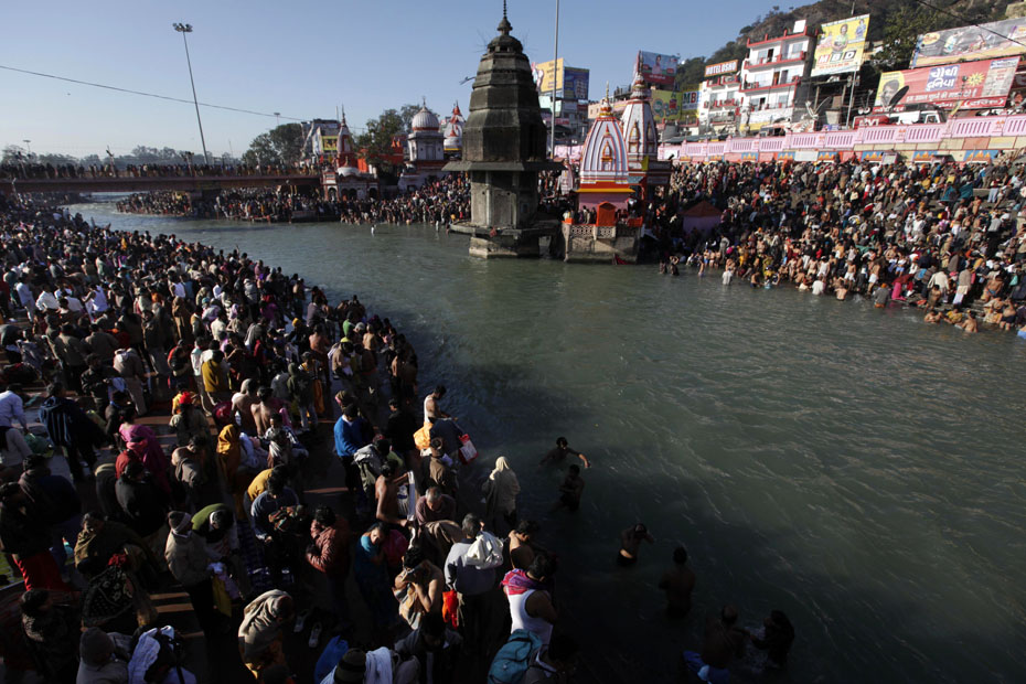 1月14日,数千名印度教信徒前往恒河参加世界上最大的宗教集会大壶节,并在印度圣河——恒河进行了沐浴仪式。图片来源:中国新闻网