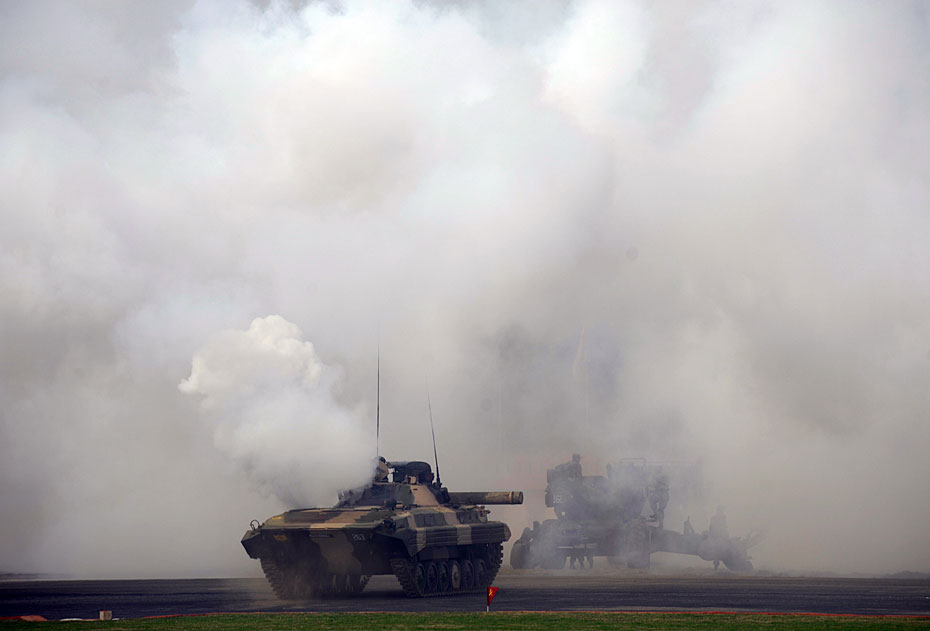 图为印度陆军炮兵在建军节上表演。
