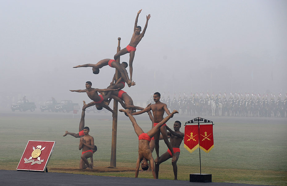1月15日,在印度首都新德里举行的建军节阅兵式上,印度士兵接受检阅。图片来源:中国新闻网