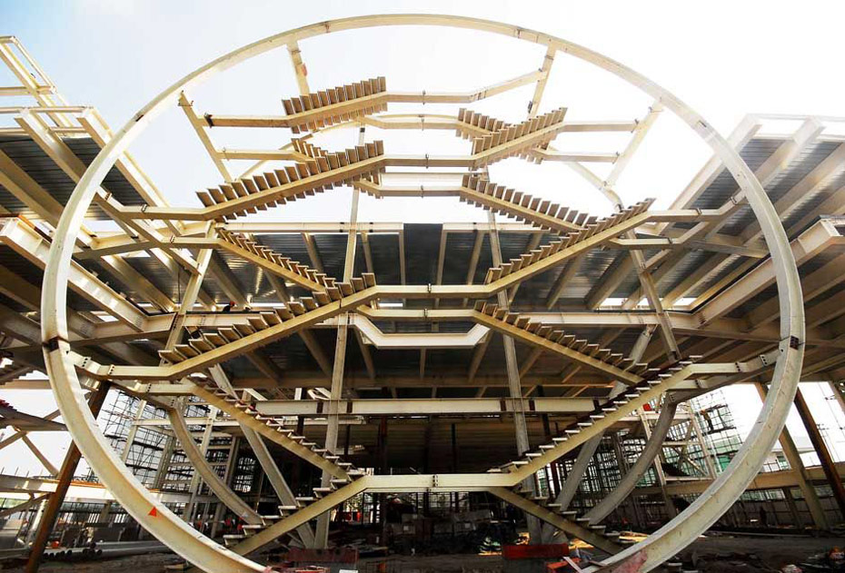 2010年1月21日上海迎来世博会开幕倒计时100天。世博会场馆建设进入最后冲刺阶段,部分场馆已形象初显。图为韩国馆。钮一新/CFP