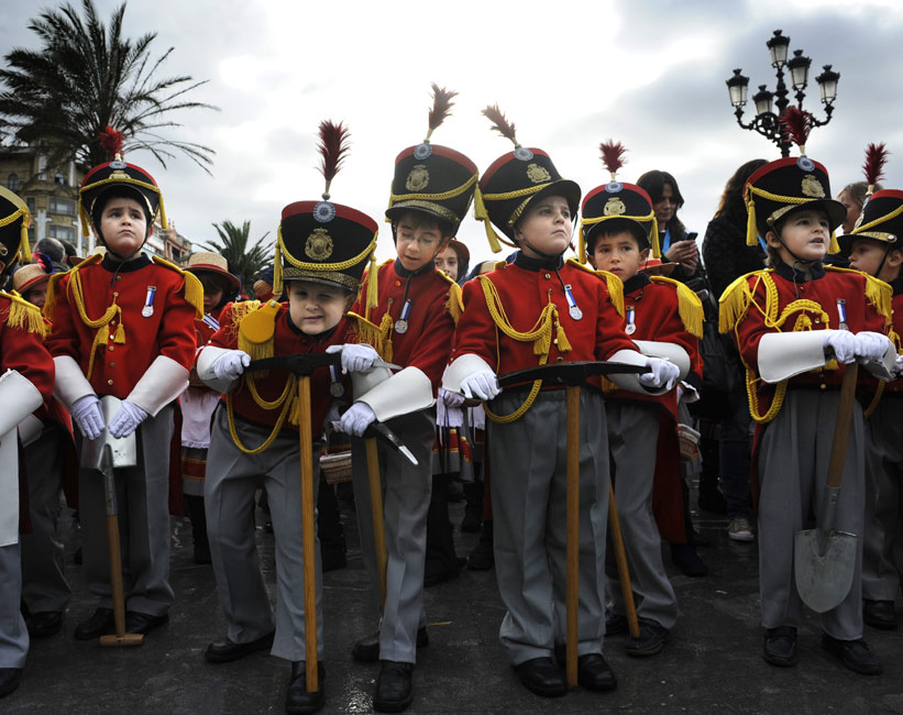 当地时间1月20日,西班牙迎来传统的圣塞巴斯蒂安节。对圣塞巴斯蒂安人来说,这是一年中最隆重的节日。图为儿童穿着士兵传统服装进行游行。