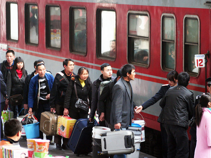 一年一度的春运今日起正式开始。2010年的春运从1月30日起至3月10日,为期40天,其中节前15天,节后25天。据权威预测,今年春运客运量料超25亿人次。图为旅客们准备登上K804次福州开往重庆北的列车,赶在春运开始前返乡。郑帅 摄