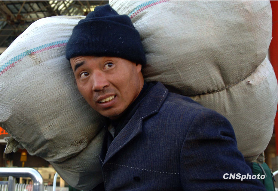 一年一度的春运今日起正式开始。2010年的春运从1月30日起至3月10日,为期40天,其中节前15天,节后25天。据权威预测,今年春运客运量料超25亿人次。 1月30日,北京西站广场上,一名中国民工扛着行囊和打工的收获,返乡过节。中新社发 邹宪 摄