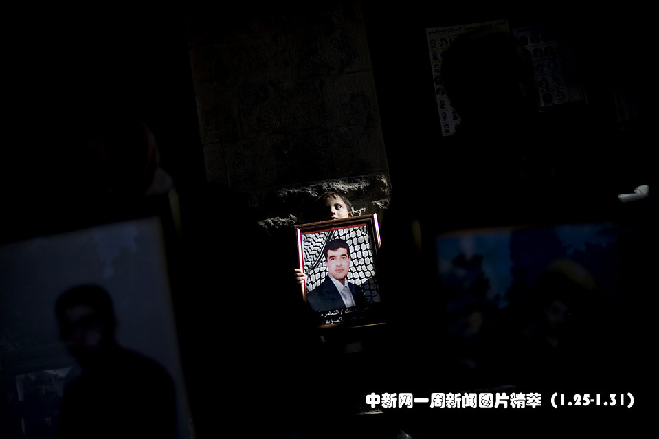 1月27日(周三),一名巴勒斯坦男孩手举照片,进行抗议活动,要求以色列释放关押的巴勒斯坦囚犯。图片来源:中国新闻网