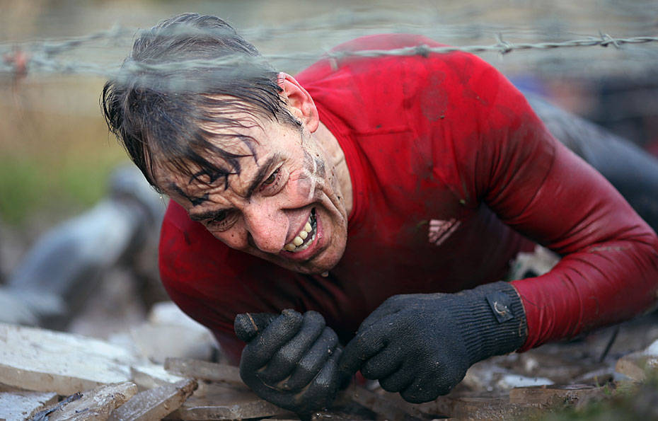 1月31日,在英国小镇Perton举行了一场硬汉挑战赛。图片来源:中国新闻网