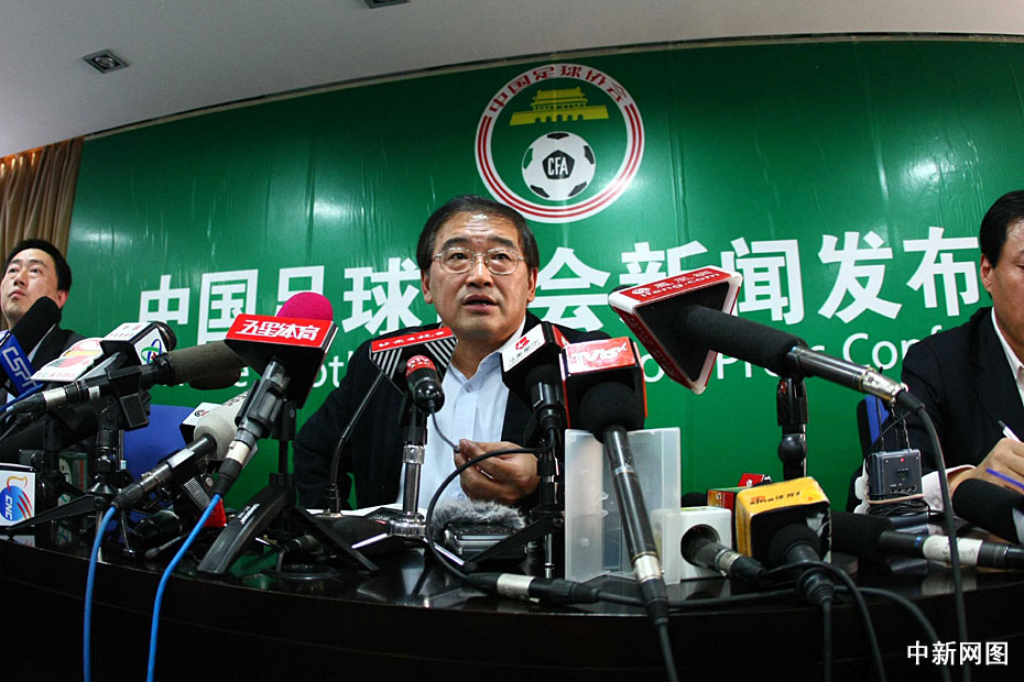 图为中国足协新任掌门人韦迪召开首个新闻发布会现场。中新社记者 富田 摄