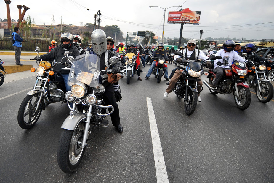当地时间2月6日,在危地马拉首都危地马拉城,大约30000名摩托车手驾驶着机车在街头游行。