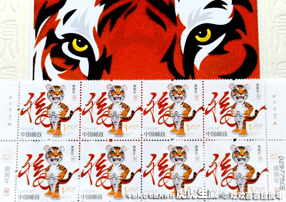 1月4日,北京朝阳区水碓子邮局,工作人员清点刚刚送到的《庚寅年》特种邮票。1月5日,中国邮政将发行《庚寅年》特种邮票,该邮票为1套1枚,面值1.20元。中新社发 远舟 摄