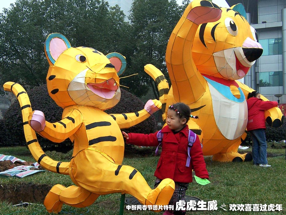 2月7日,10座“卡通虎灯”亮相江苏省南京市街头,为即将到来的新春佳节增添了喜气。这批“卡通虎灯”由江苏省扬州市民间艺人制作,造型各异,憨态可掬,吸引了众多小朋友的喜爱。中新社发 安东 摄