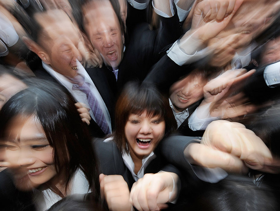2月10日,日本东京职业学校的学生在求职动员会上伸出拳头展现信心。日本的失业率达5%,2011届毕业生将面临严峻就业形式。图片来源:中国新闻网