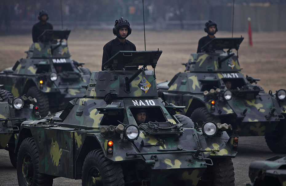 当地时间2月12日,尼泊尔士兵在首都加德满都举行了建军节阅兵式。尼泊尔总统和总参谋长检阅了受阅部队。图片来源:中国新闻网