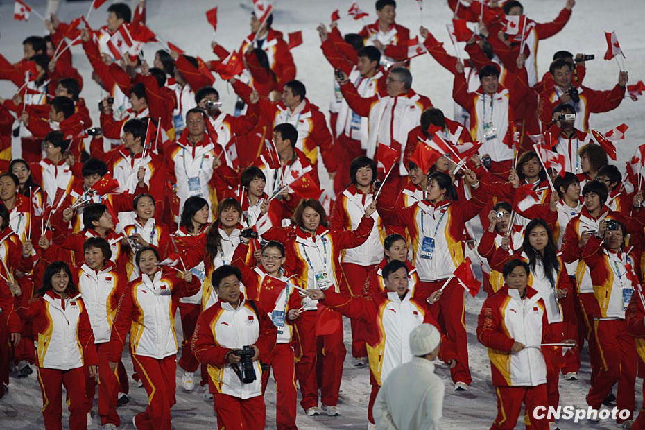 图为中国冬奥代表团运动员入场。