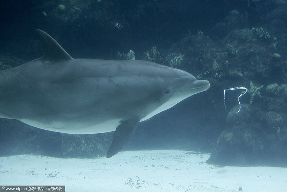 近日,美国奥兰多海洋世界的一只宽吻海豚吹出“心形”气泡,似乎要在情人节来临前夕传达浓浓爱意。图片来源:CFP