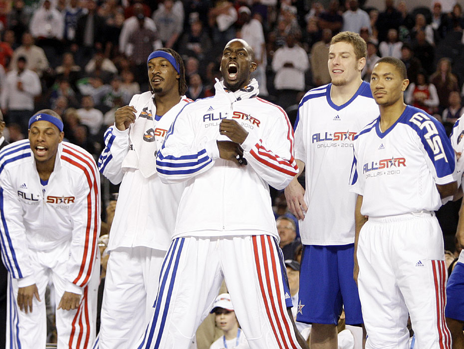 美国当地时间2月14日,2010NBA全明星周末,东部明星队以141比139险胜西部明星队。整场比赛犹如度假一般全无紧张气氛。图片来源:中国新闻网