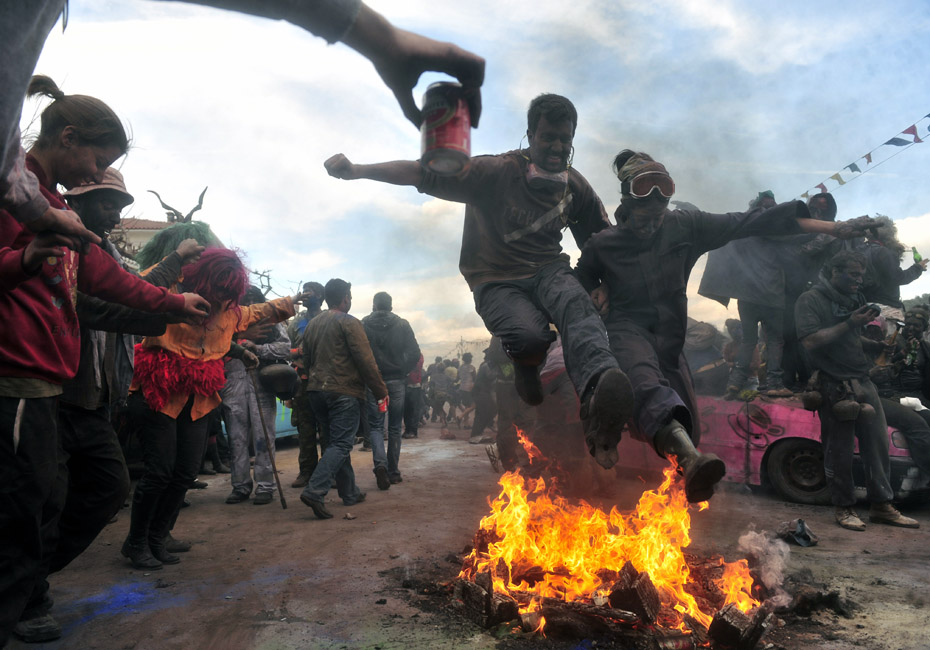 2月15日,希腊港口加拉西迪,狂欢者在街头参加“面粉大战”。“面粉大战”是当地庆祝狂欢季结束的一项传统活动,随后将是为期40天的斋戒月直至复活节。图片来源:中国新闻网