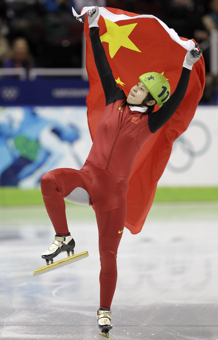 2010年温哥华冬奥会短道速滑女子500米决赛北京时间2月18日上午11时许举行,中国选手王濛获得冠军,为中国代表团再添一枚金牌。图片来源:中国新闻网